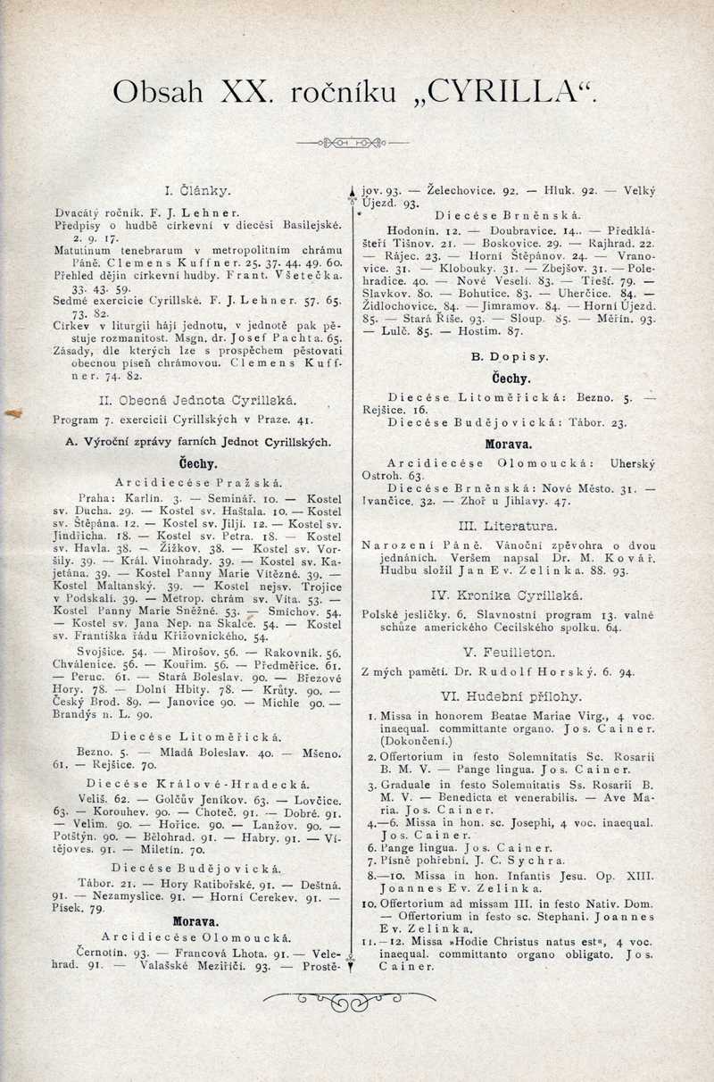 Obsah XX. ročníku "Cyrilla" Ročník: 1893; strana: 0, příloha: 2 Přepis ke stažení ve formátu MS Word [0 kB]
