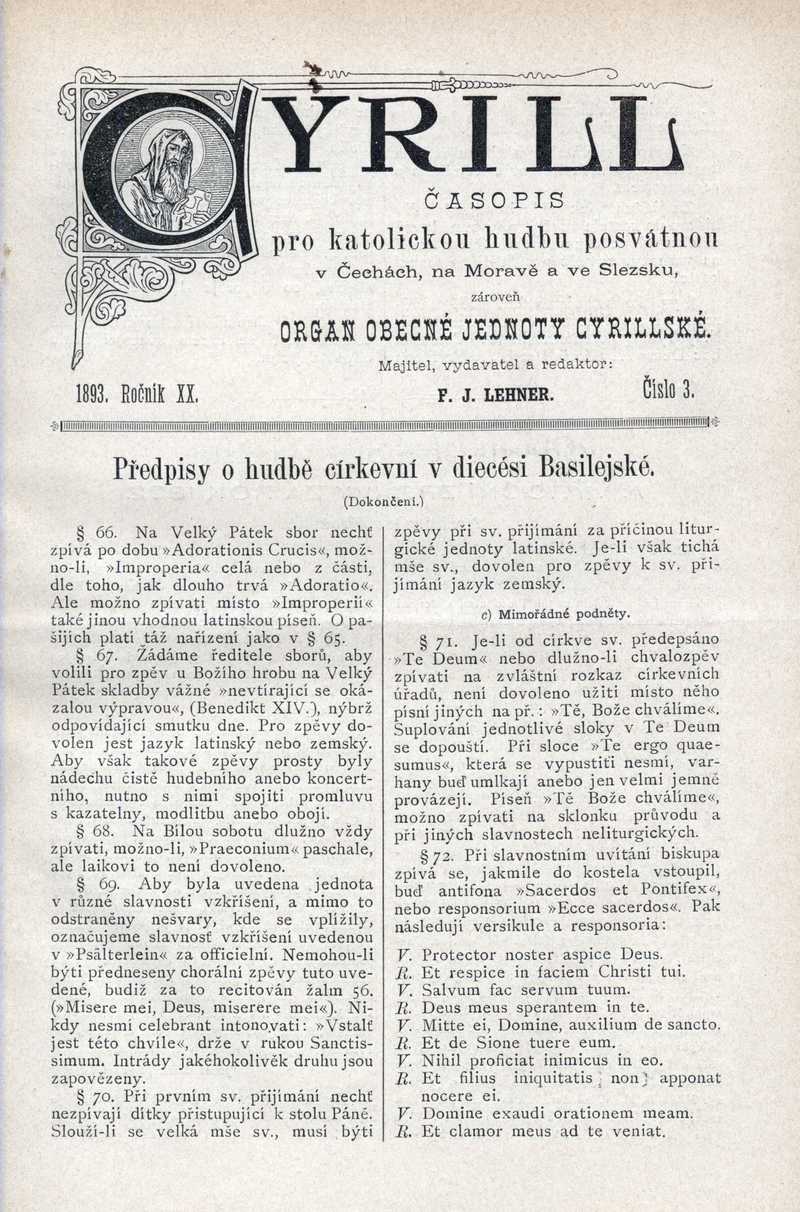 Předpisy o hudbě církevní v diecési Basilejské Ročník: 1893; strana: 17, Přepis ke stažení ve formátu MS Word [0 kB]