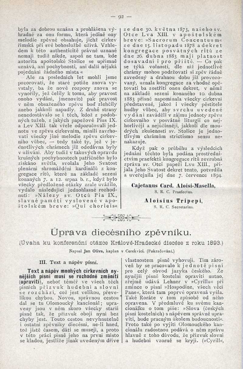 Úprava diecésního zpěvníku Ročník: 1893; strana: 96, příloha: 92 Přepis ke stažení ve formátu MS Word [0 kB]