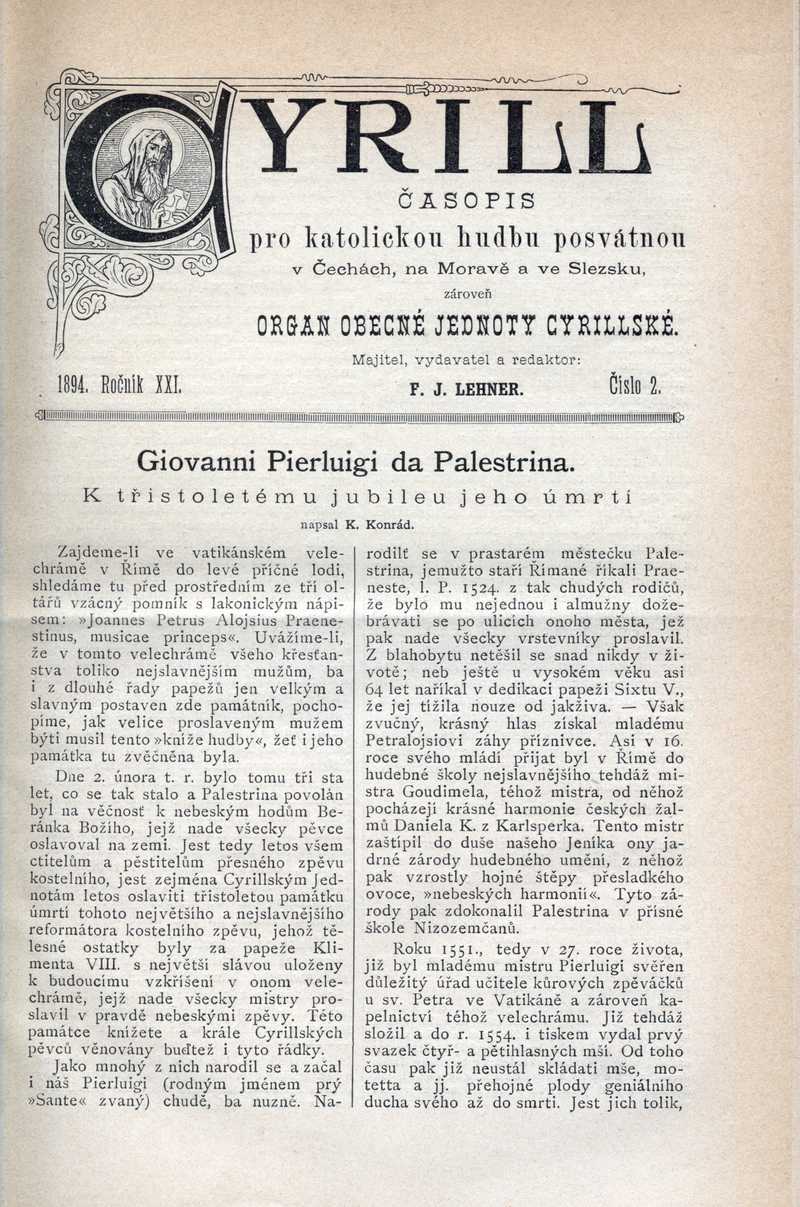 Giovanni Pierluigi da Palestrina Ročník: 1894; strana: 9, Přepis ke stažení ve formátu MS Word [0 kB]