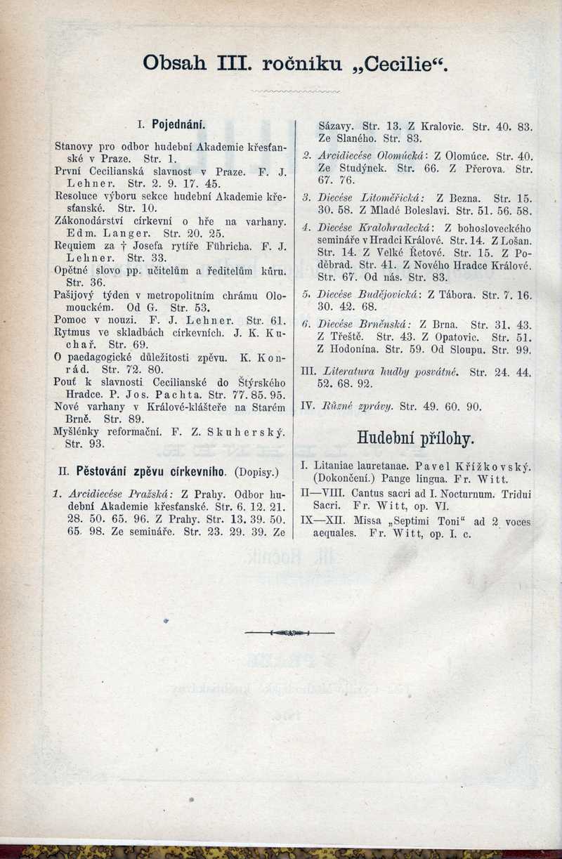 Obsah III. ročníku "Cecilie" Ročník: 1876; strana: 0, příloha: 2 Přepis ke stažení ve formátu MS Word [0 kB]