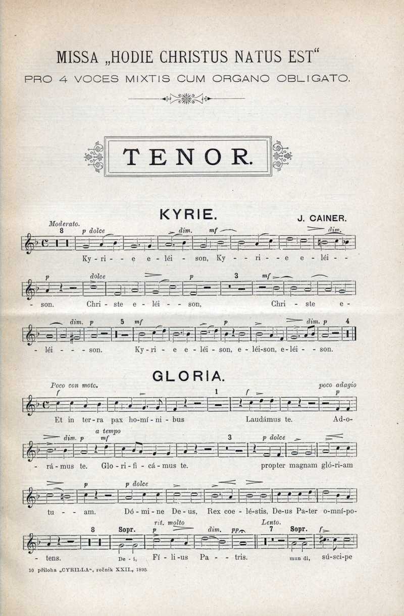Missa "Hodie Christus natus est" (tenor) Ročník: 1895; strana: 100, příloha: 1 Přepis ke stažení ve formátu MS Word [0 kB]