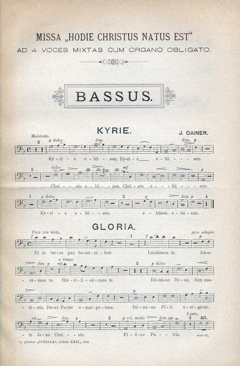 Missa "Hodie Christus natus est" (bassus) Ročník: 1895; strana: 101, příloha: 1 Přepis ke stažení ve formátu MS Word [0 kB]