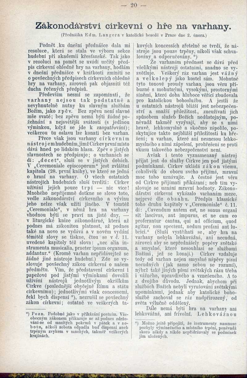 Zákonodárství církevní o hře na varhany Ročník: 1876; strana: 20, Přepis ke stažení ve formátu MS Word [0 kB]