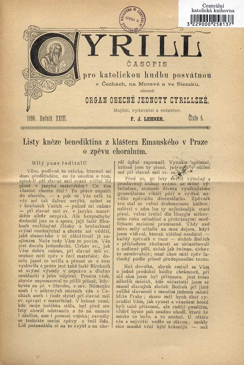 Listy kněze benediktina z kláštera Emauského v Praze o zpěvu chorálním Ročník: 1896; strana: 33, Přepis ke stažení ve formátu MS Word [0 kB]