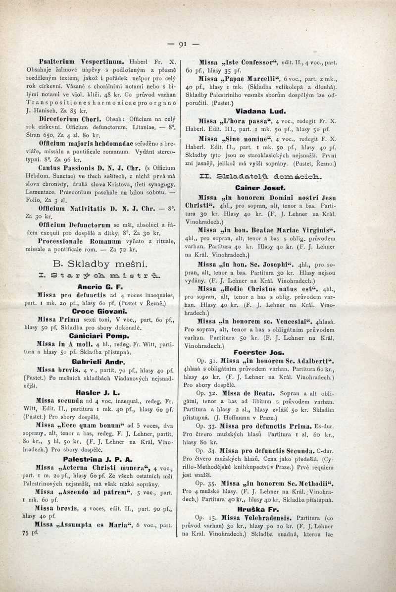 B. Skladby mešní
