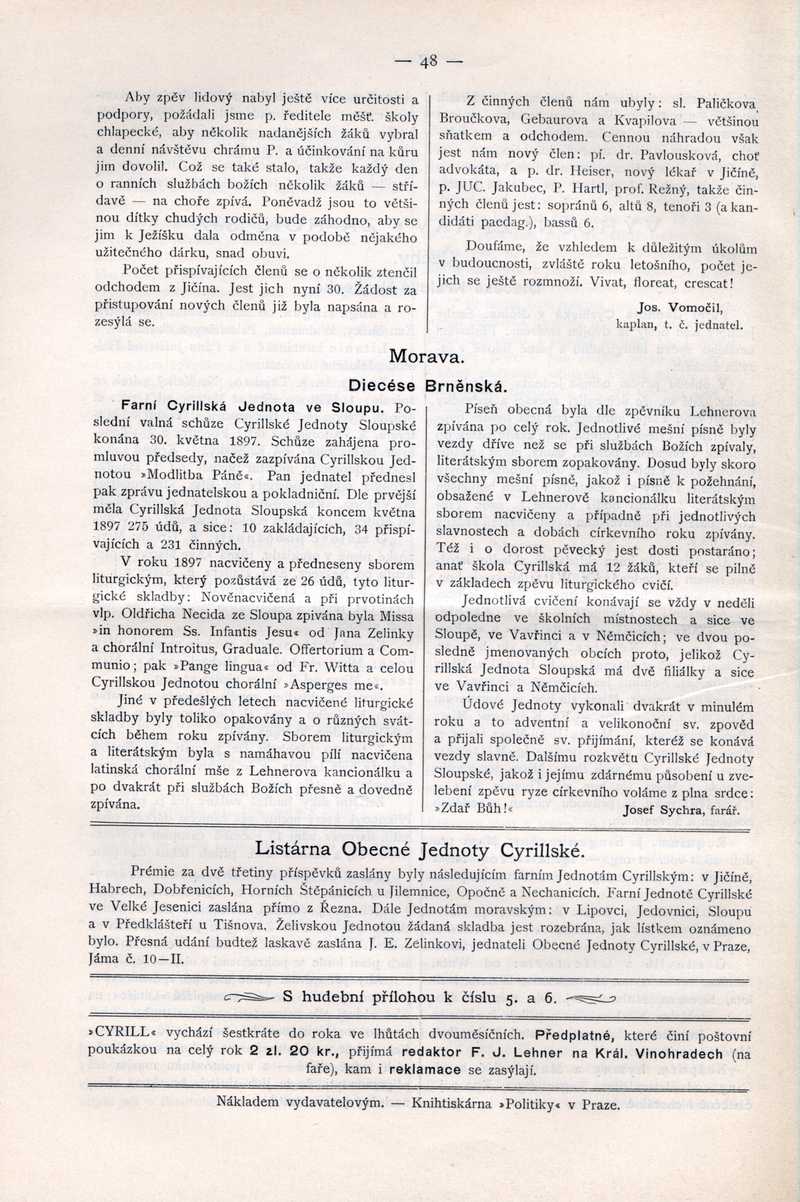 Listárna Obecné Jednoty Cyrillské Ročník: 1898; strana: 48, Přepis ke stažení ve formátu MS Word [0 kB]