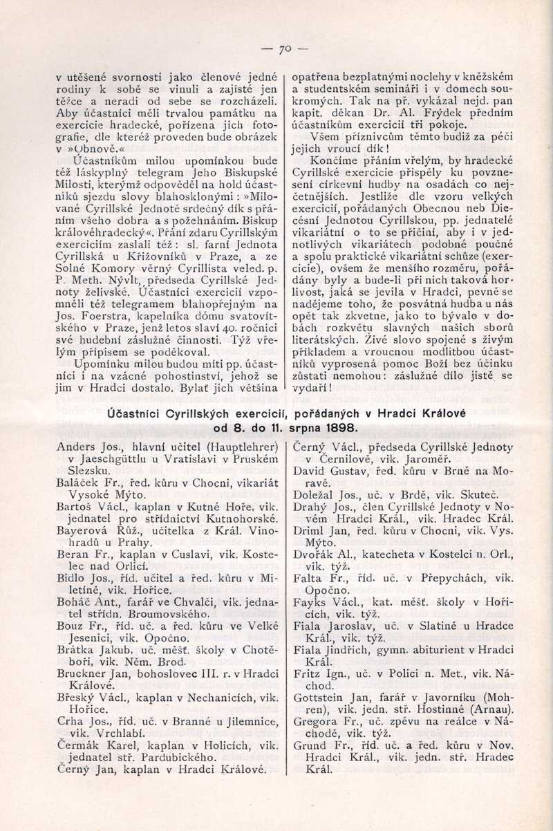 Účastníci Cyrillských exercicií, pořádaných v Hradci Králové od 8. do 11 srpna 1898 Ročník: 1898; strana: 70, Přepis ke stažení ve formátu MS Word [0 kB]