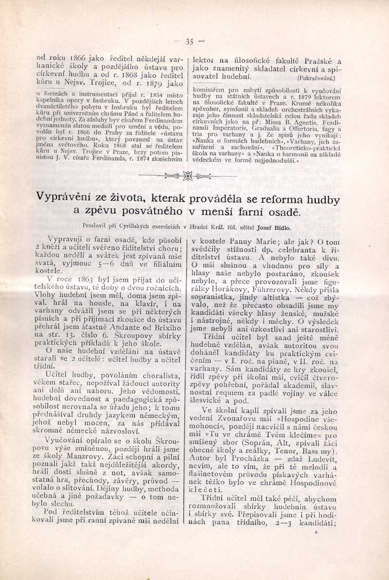 Vyprávění ze života, kterak prováděla se reforma hudby a zpěvu ... v menší far. osadě Ročník: 1899; strana: 35, Přepis ke stažení ve formátu MS Word [0 kB]