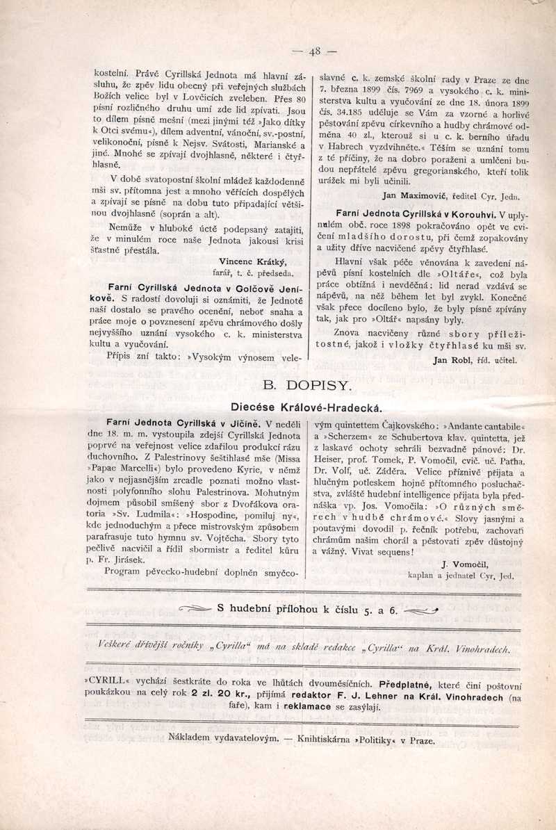 Farní Jednota Cyrillská v Jičíně Ročník: 1899; strana: 48, Přepis ke stažení ve formátu MS Word [0 kB]