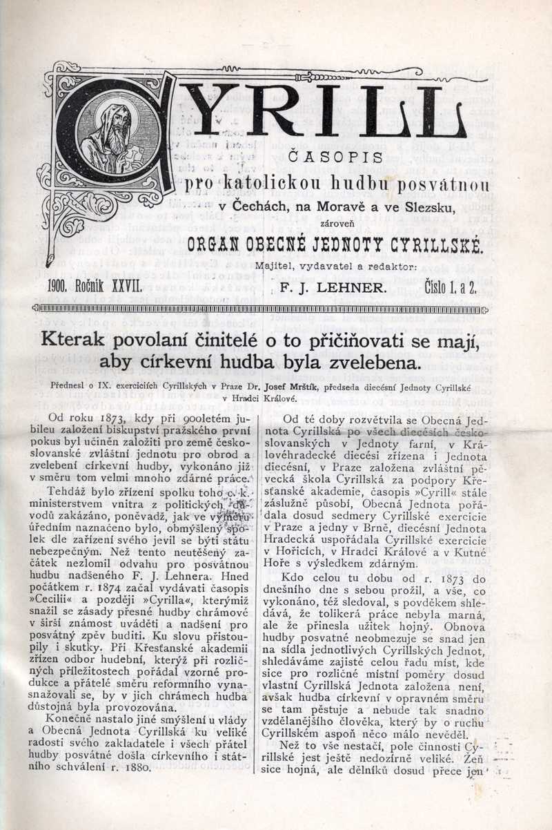 Kterak povolaní činitelé o to přičiňovati se mají, aby círk. hudba byla zvelebena Ročník: 1900; strana: 1, Přepis ke stažení ve formátu MS Word [0 kB]