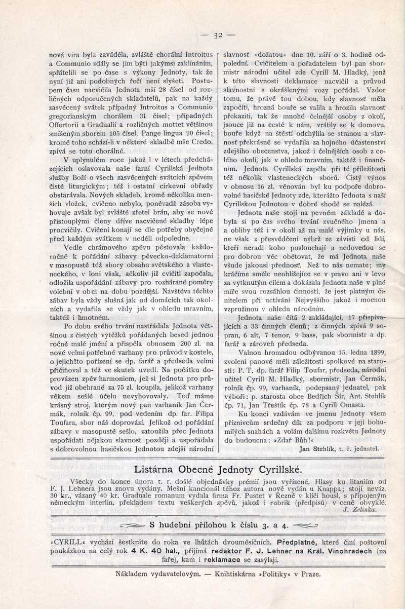 Listárna Obecné Jednoty Cyrillské Ročník: 1900; strana: 32, Přepis ke stažení ve formátu MS Word [0 kB]