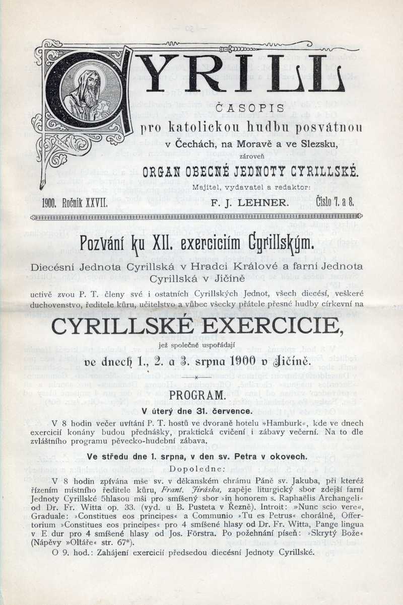 Pozvání ku XII. exerciciím Cyrillským Ročník: 1900; strana: 49, Přepis ke stažení ve formátu MS Word [0 kB]