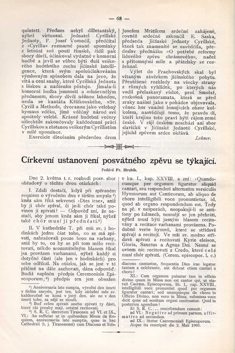 Církevní ustanovení posvátného zpěvu se týkající Ročník: 1900; strana: 68, Přepis ke stažení ve formátu MS Word [0 kB]