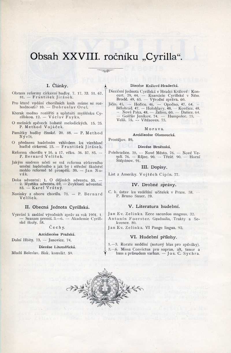 Obsah XXVIII. ročníku "Cyrilla" Ročník: 1901; strana: 0, příloha: 2 Přepis ke stažení ve formátu MS Word [0 kB]