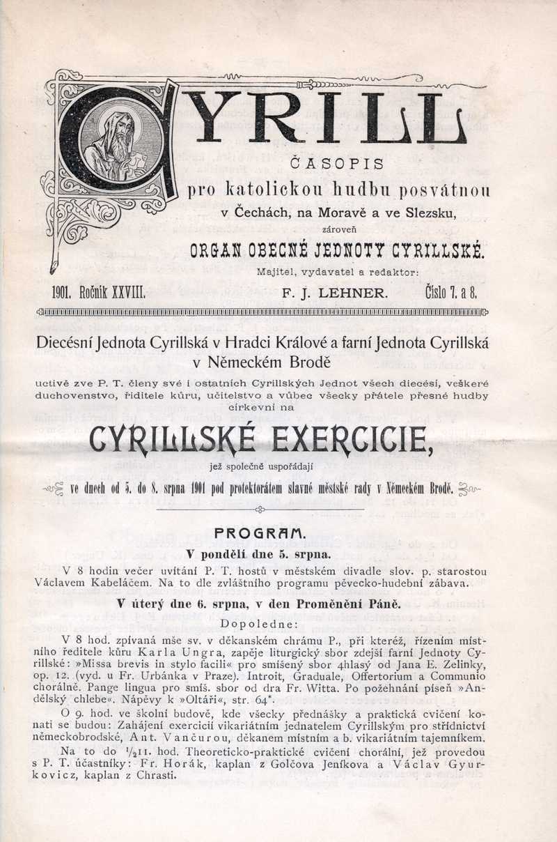Pozvání na Cyrillské exercicie (Program) Ročník: 1901; strana: 49, Přepis ke stažení ve formátu MS Word [0 kB]