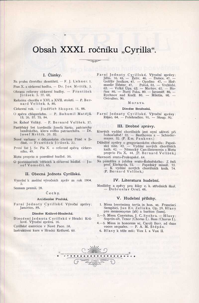 Obsah XXXI. ročníku "Cyrilla" Ročník: 1904; strana: 0, příloha: 2 Přepis ke stažení ve formátu MS Word [0 kB]
