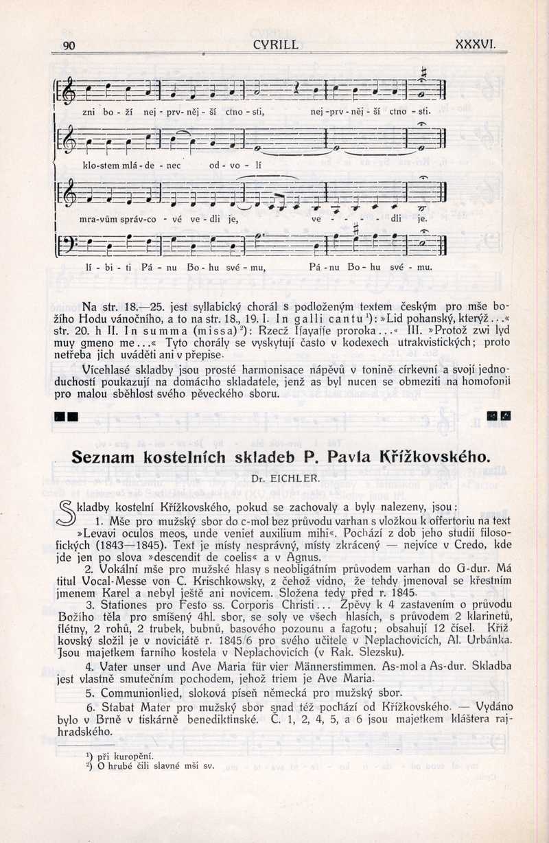 Seznam kostelních skladeb P. Pavla Křížkovského Ročník: 1910; strana: 90, Přepis ke stažení ve formátu MS Word [0 kB]