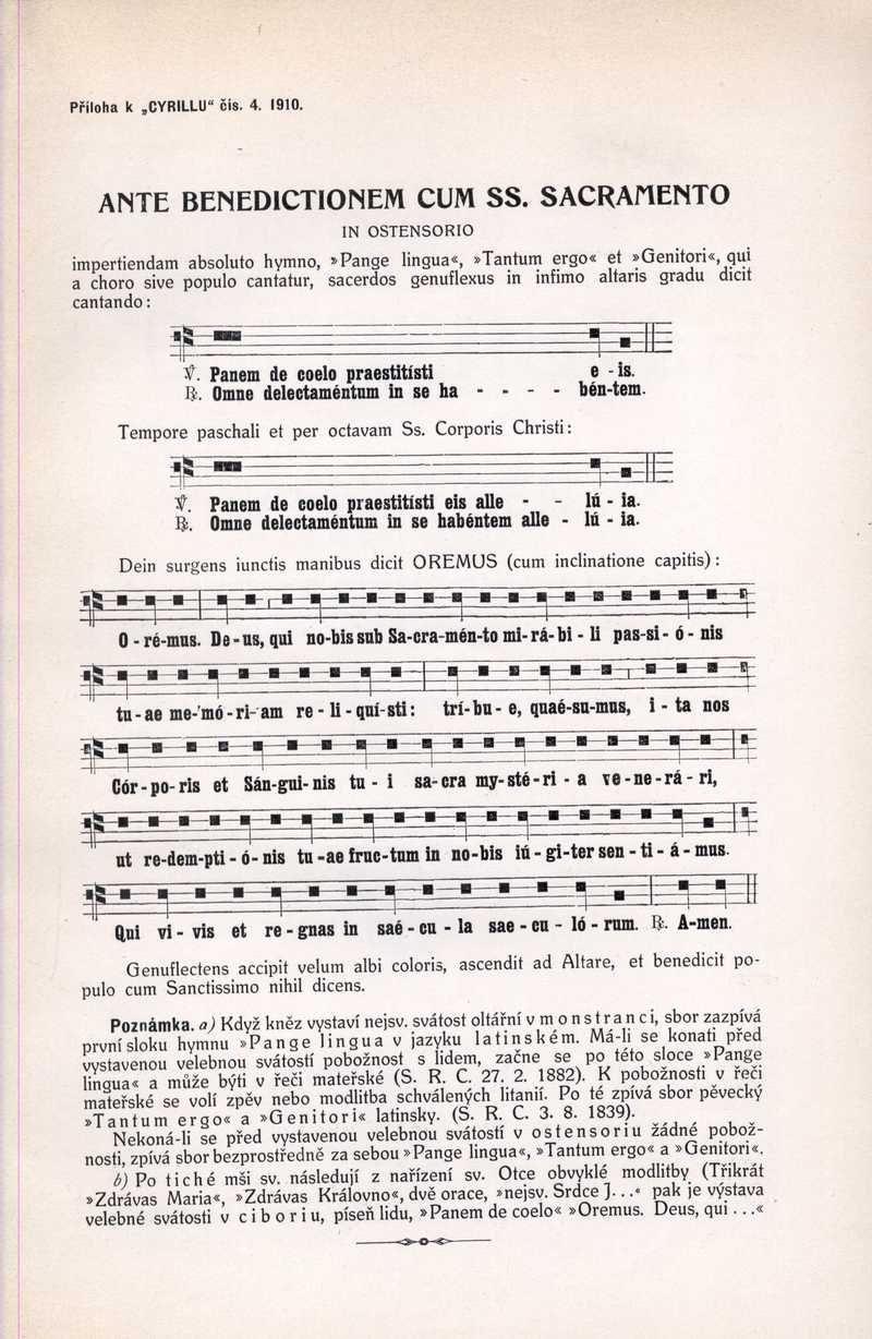 Ante benedictionemcum ss. Sacramento Ročník: 1910; strana: 166, příloha: 1 Přepis ke stažení ve formátu MS Word [0 kB]