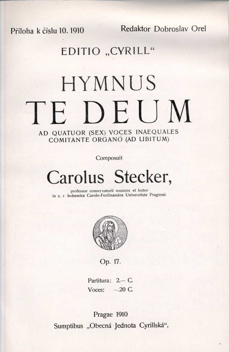 Editio "Cyrill". Hymnus Te Deum (titulní strana) Ročník: 1910; strana: 168, příloha: 1 Přepis ke stažení ve formátu MS Word [0 kB]
