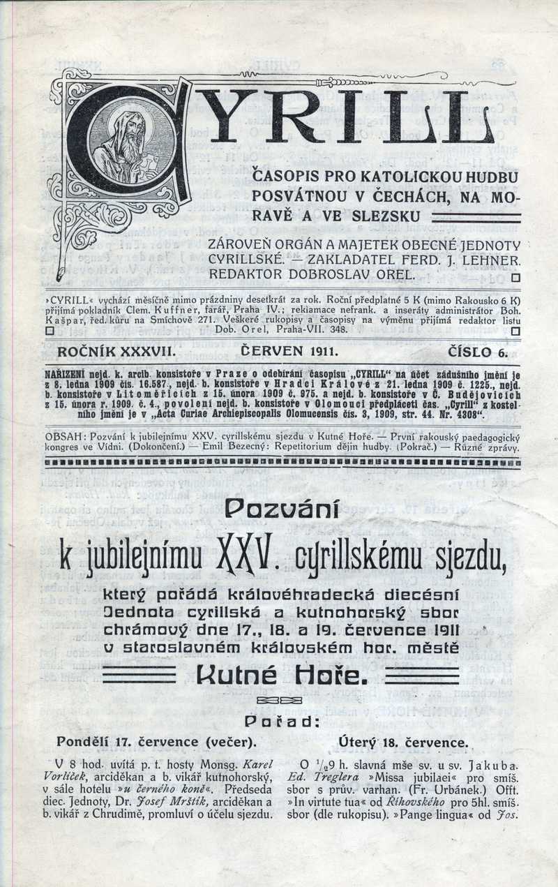 Pozvání k jubilejnímu XXV. cyrillskému sjezdu Ročník: 1911; strana: 81, Přepis ke stažení ve formátu MS Word [0 kB]