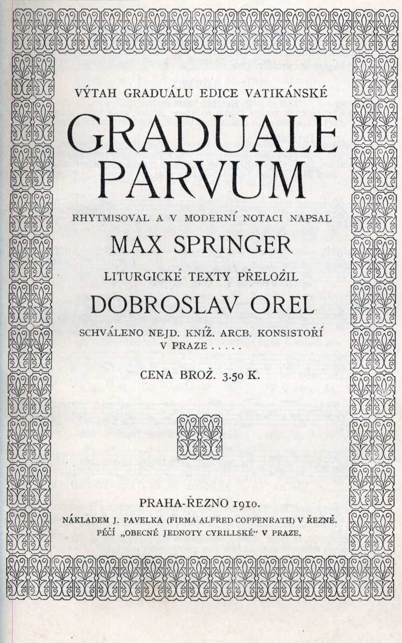 Graduale parvum (titulní strana) Ročník: 1911; strana: 161, příloha: 1 Přepis ke stažení ve formátu MS Word [0 kB]