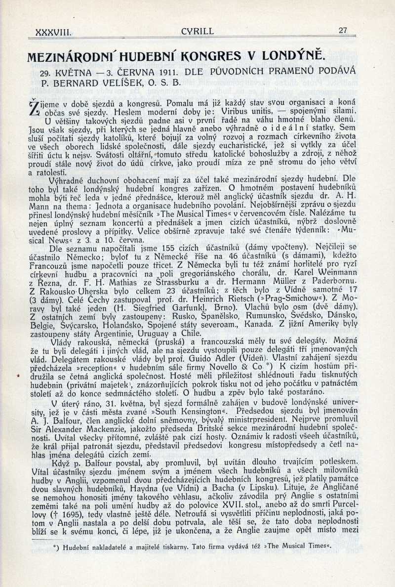 Mezinárodní hudební kongres v Londýně Ročník: 1912; strana: 27, Přepis ke stažení ve formátu MS Word [0 kB]