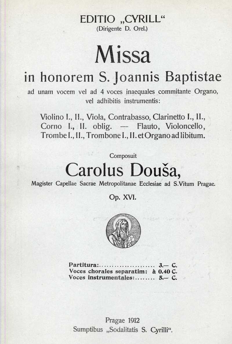 Missa in honorem S. Joannis Baptistae (titulní strana) Ročník: 1912; strana: 161, příloha: 1 Přepis ke stažení ve formátu MS Word [0 kB]