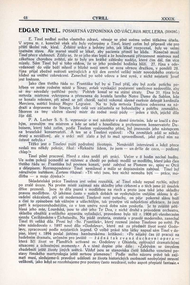Edgar Tinel (posmrtná vzpomínka) Ročník: 1913; strana: 48, Přepis ke stažení ve formátu MS Word [0 kB]