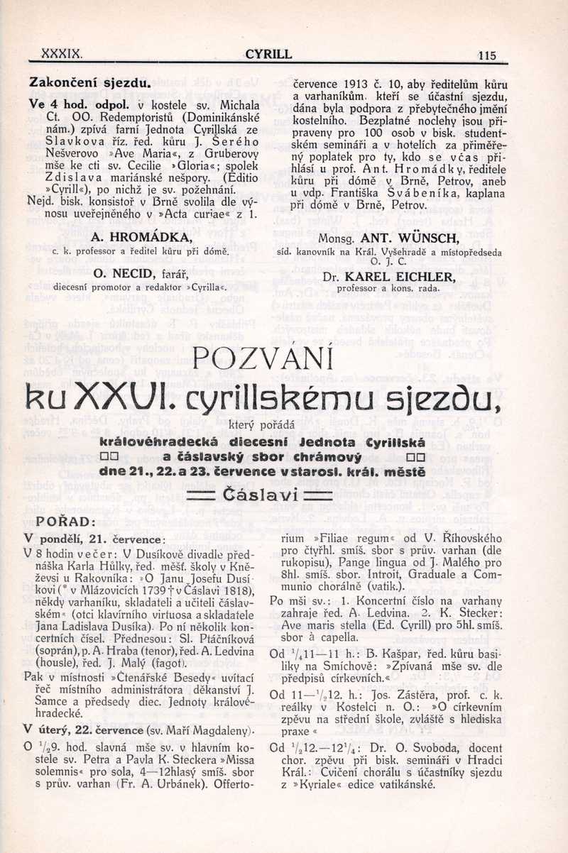 Pozvání ku XXVI. cyrillskému sjezdu (v Čáslavi) Ročník: 1913; strana: 115, Přepis ke stažení ve formátu MS Word [0 kB]