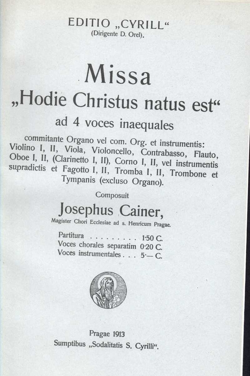 Missa "Hodie Christus natus est" (titul. strana) Ročník: 1913; strana: 217, příloha: 1 Přepis ke stažení ve formátu MS Word [0 kB]