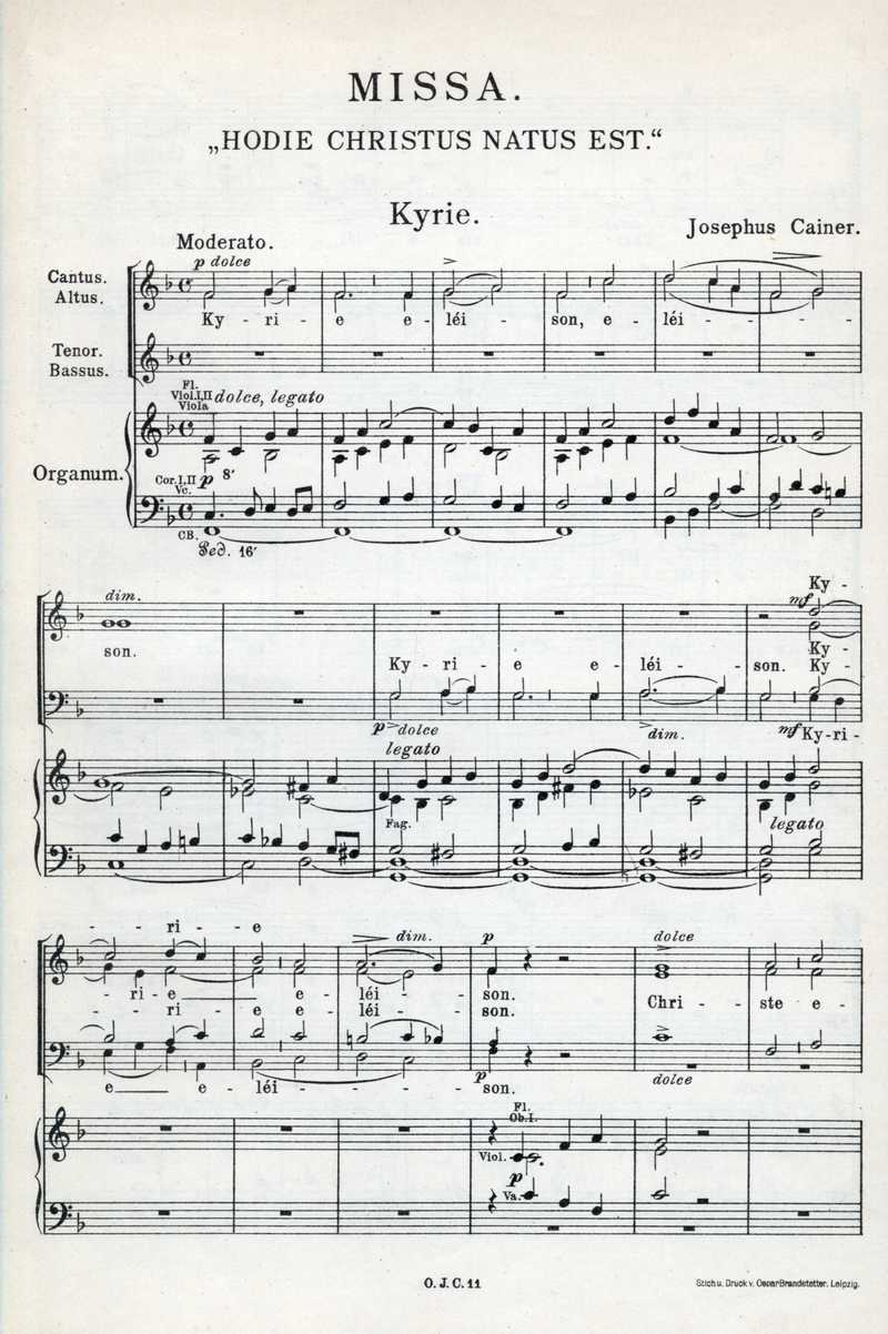 Missa "Hodie Christus natus est" (noty) Ročník: 1913; strana: 217, příloha: 3 Přepis ke stažení ve formátu MS Word [0 kB]