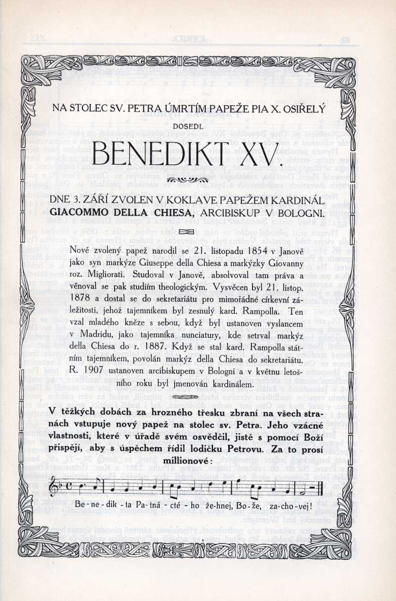 Na stolec sv. Petra... dosedl Benedikt XV. Ročník: 1914; strana: 81, Přepis ke stažení ve formátu MS Word [0 kB]