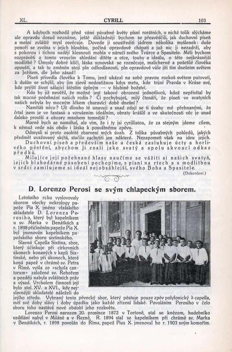 D. Lorenzo Perosi se svým chlapeckým sborem Ročník: 1914; strana: 103, Přepis ke stažení ve formátu MS Word [0 kB]