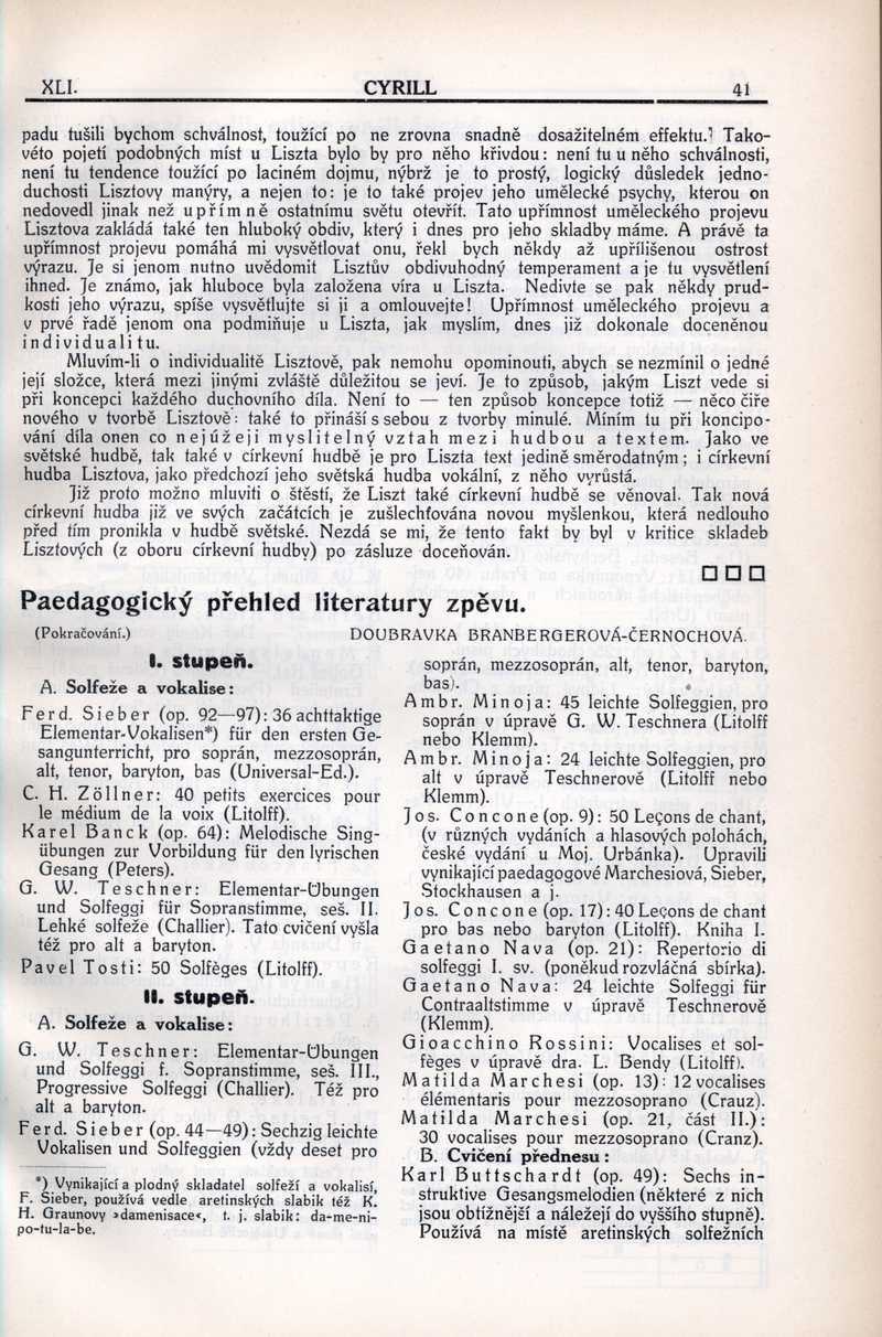 Pedagogický přehled literatury zpěvu Ročník: 1915; strana: 41, Přepis ke stažení ve formátu MS Word [0 kB]