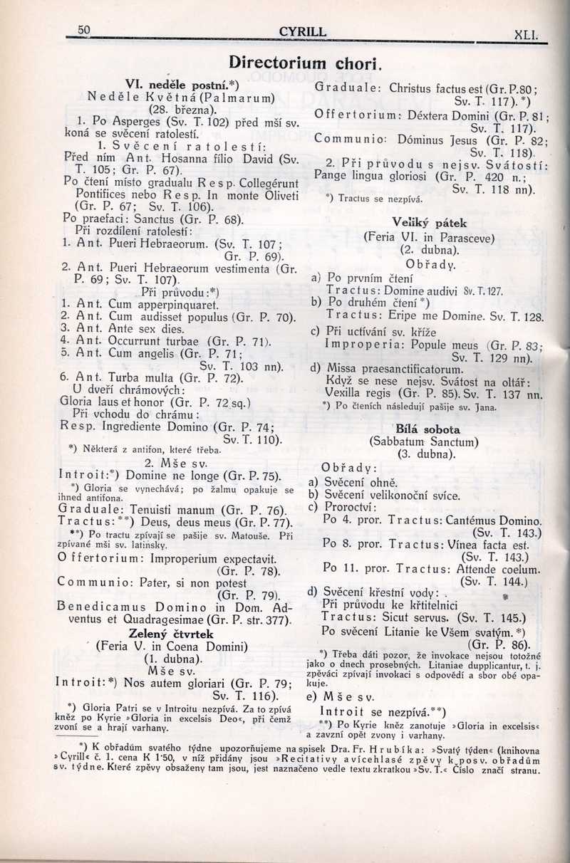 Directorium chori (Postní doba. Velikonoční doba) Ročník: 1915; strana: 50, Přepis ke stažení ve formátu MS Word [0 kB]