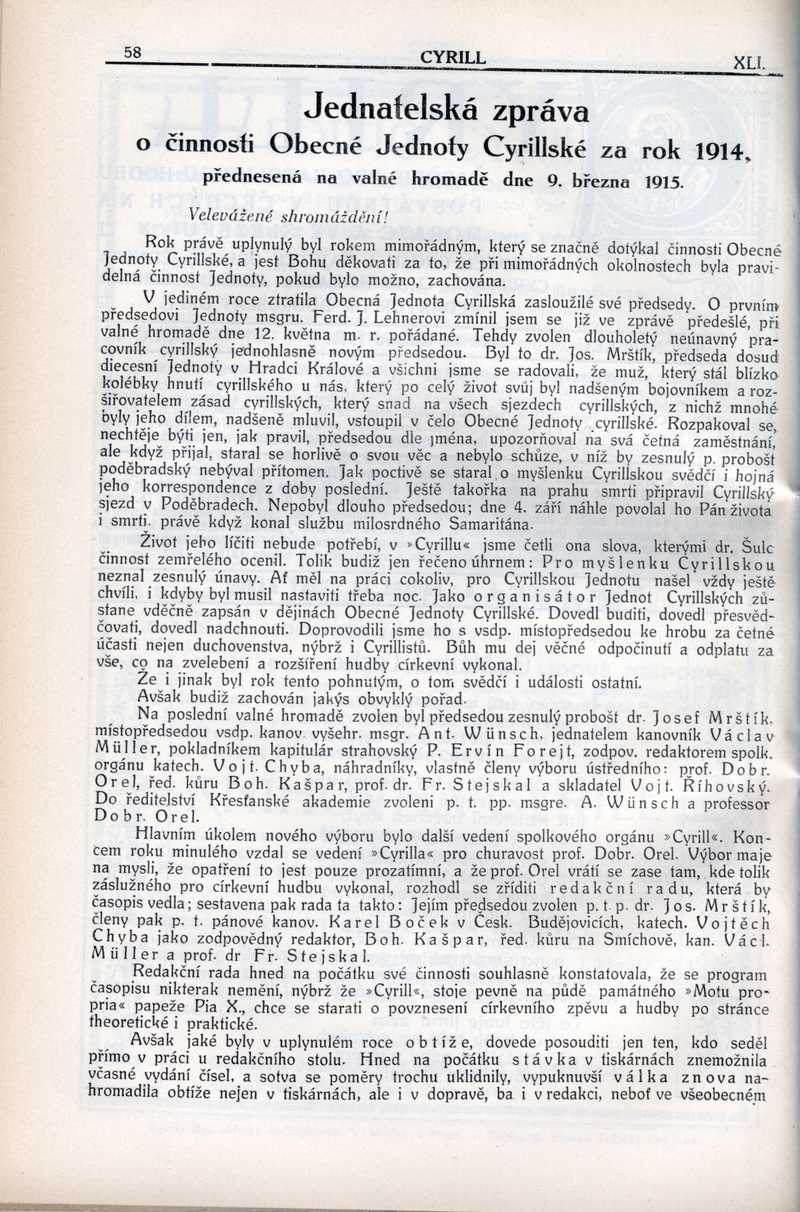 Jednatelská zpráva o činnosti Ob. Jed. Cyrillské za r. 1914 Ročník: 1915; strana: 58, Přepis ke stažení ve formátu MS Word [0 kB]