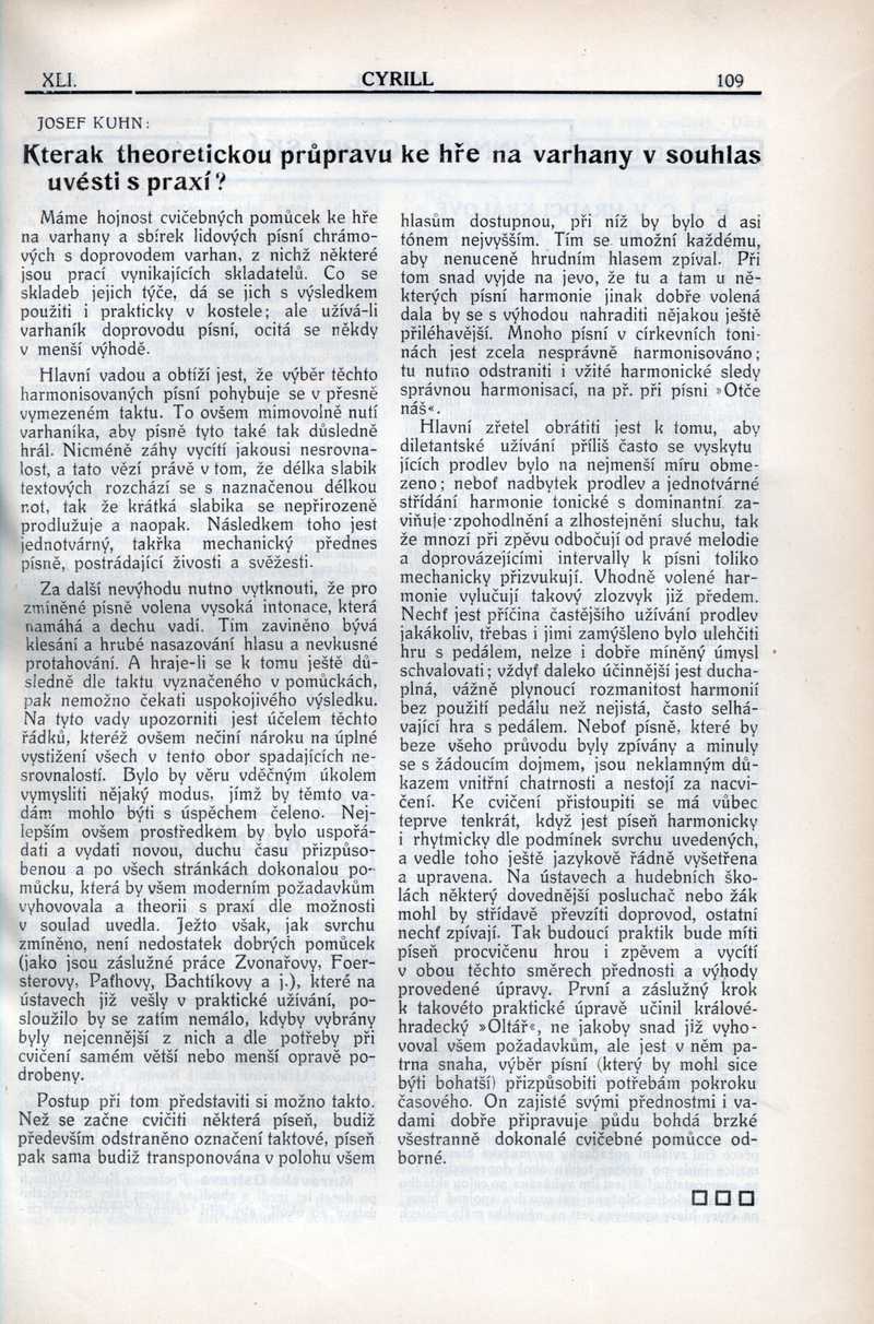 Kterak theoretickou průpravu ke hře na varhany v souhlas uvésti s praxí? Ročník: 1915; strana: 109, Přepis ke stažení ve formátu MS Word [0 kB]