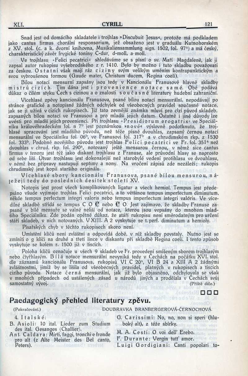 Paedagogický přehled literatury zpěvu Ročník: 1915; strana: 121, Přepis ke stažení ve formátu MS Word [0 kB]