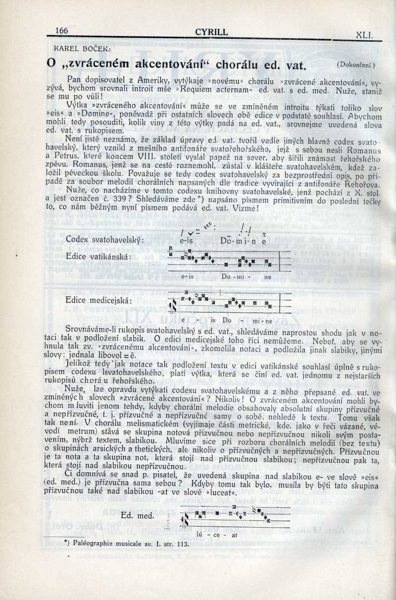 O "zvráceném akcentování" chorálu ed. vat. Ročník: 1915; strana: 166, Přepis ke stažení ve formátu MS Word [0 kB]