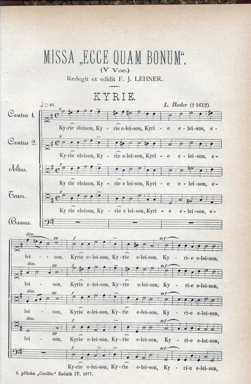 Missa "Ecce quam bonum" Ročník: 1877; strana: 101, příloha: 1 Přepis ke stažení ve formátu MS Word [0 kB]