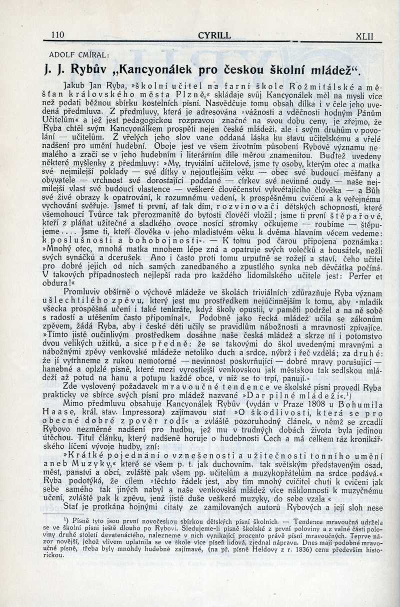 J. J. Rybův "Kancyonálek pro českou školní mládež" Ročník: 1916; strana: 110, Přepis ke stažení ve formátu MS Word [0 kB]
