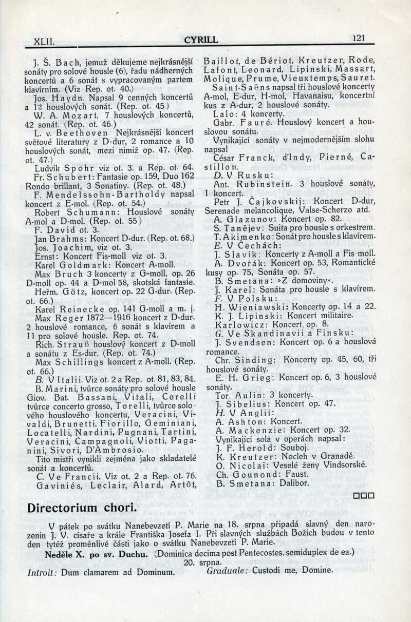 Directorium chori (neděle X. až XVIII. po sv. Duchu) Ročník: 1916; strana: 121, Přepis ke stažení ve formátu MS Word [0 kB]