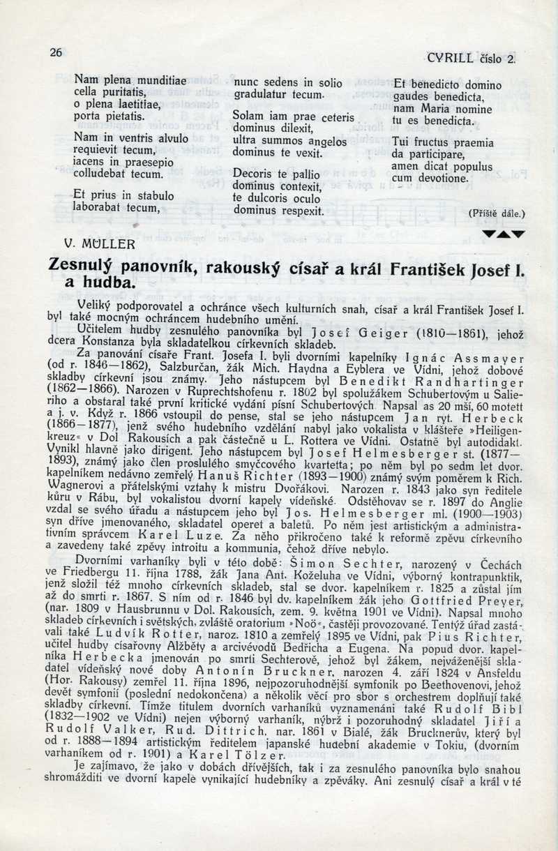 Zesnulý panovník, rakouský císař a král František Josef I. a hudba Ročník: 1917; strana: 26, Přepis ke stažení ve formátu MS Word [0 kB]