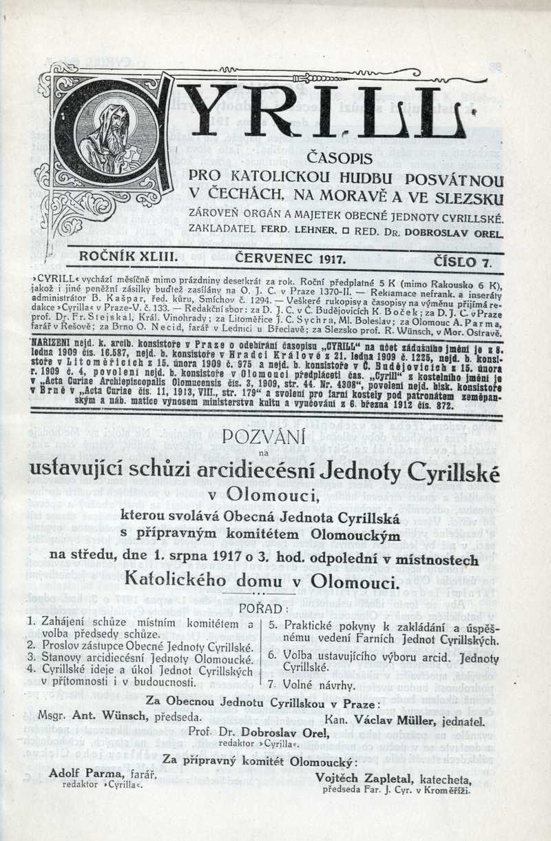 Pozvání na ustavující schůzi arcidiecésní Jednoty Cyrillské v Olomouci Ročník: 1917; strana: 97, Přepis ke stažení ve formátu MS Word [0 kB]