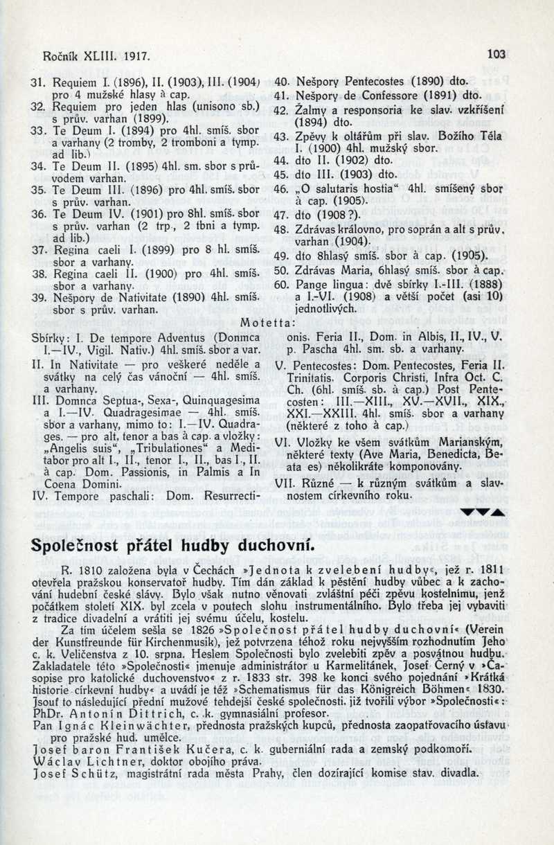 Společnost přátel hudby duchovní Ročník: 1917; strana: 103, Přepis ke stažení ve formátu MS Word [0 kB]