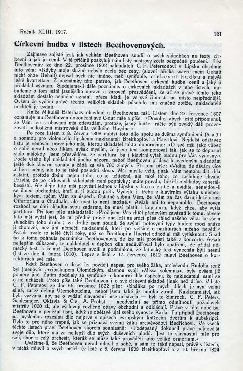 Církevní hudba v listech Beethovenových Ročník: 1917; strana: 121, Přepis ke stažení ve formátu MS Word [0 kB]