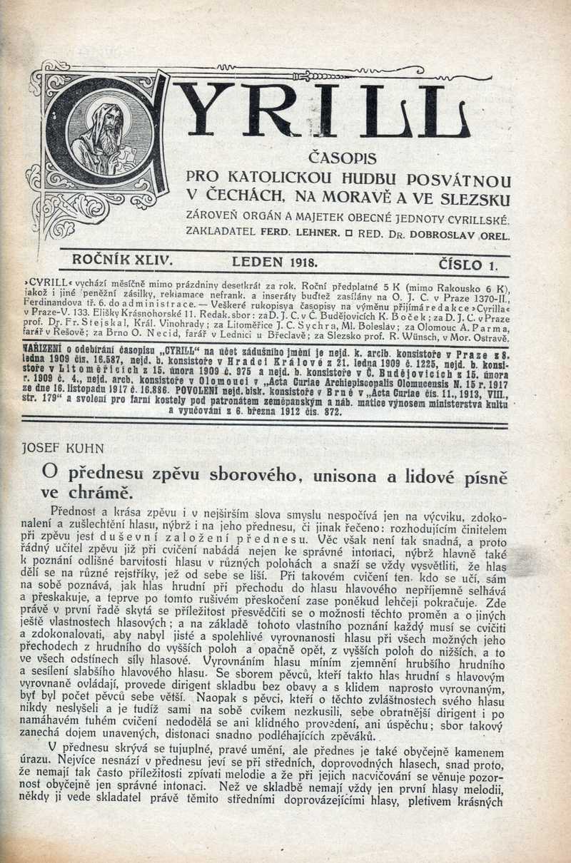 O přednesu zpěvu sborového, unisona a lidové písně ve chrámě Ročník: 1918; strana: 1, Přepis ke stažení ve formátu MS Word [0 kB]