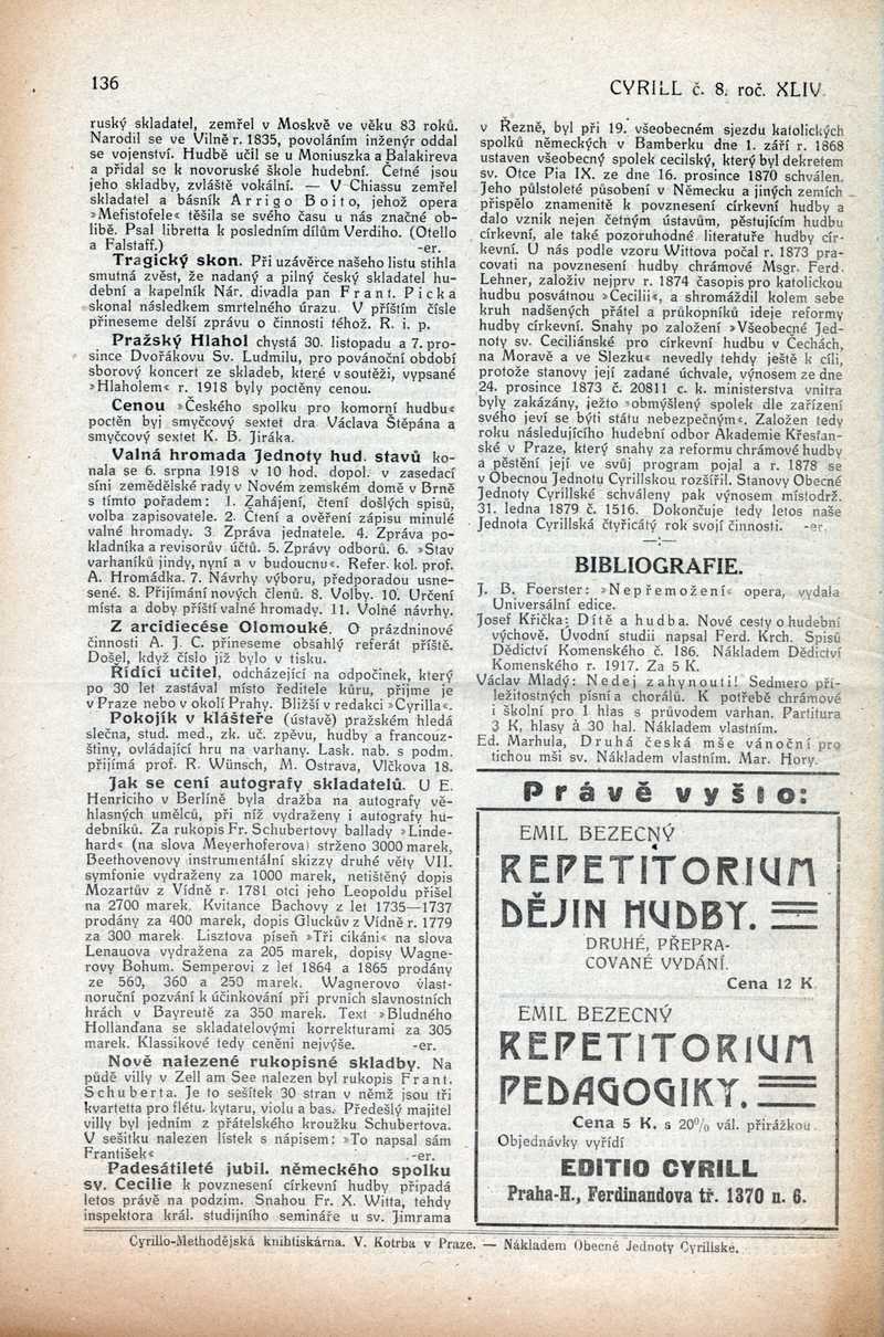 Právě vyšlo: Emil Bezecný - Repetitorium dějin hudby Ročník: 1918; strana: 136, Přepis ke stažení ve formátu MS Word [0 kB]