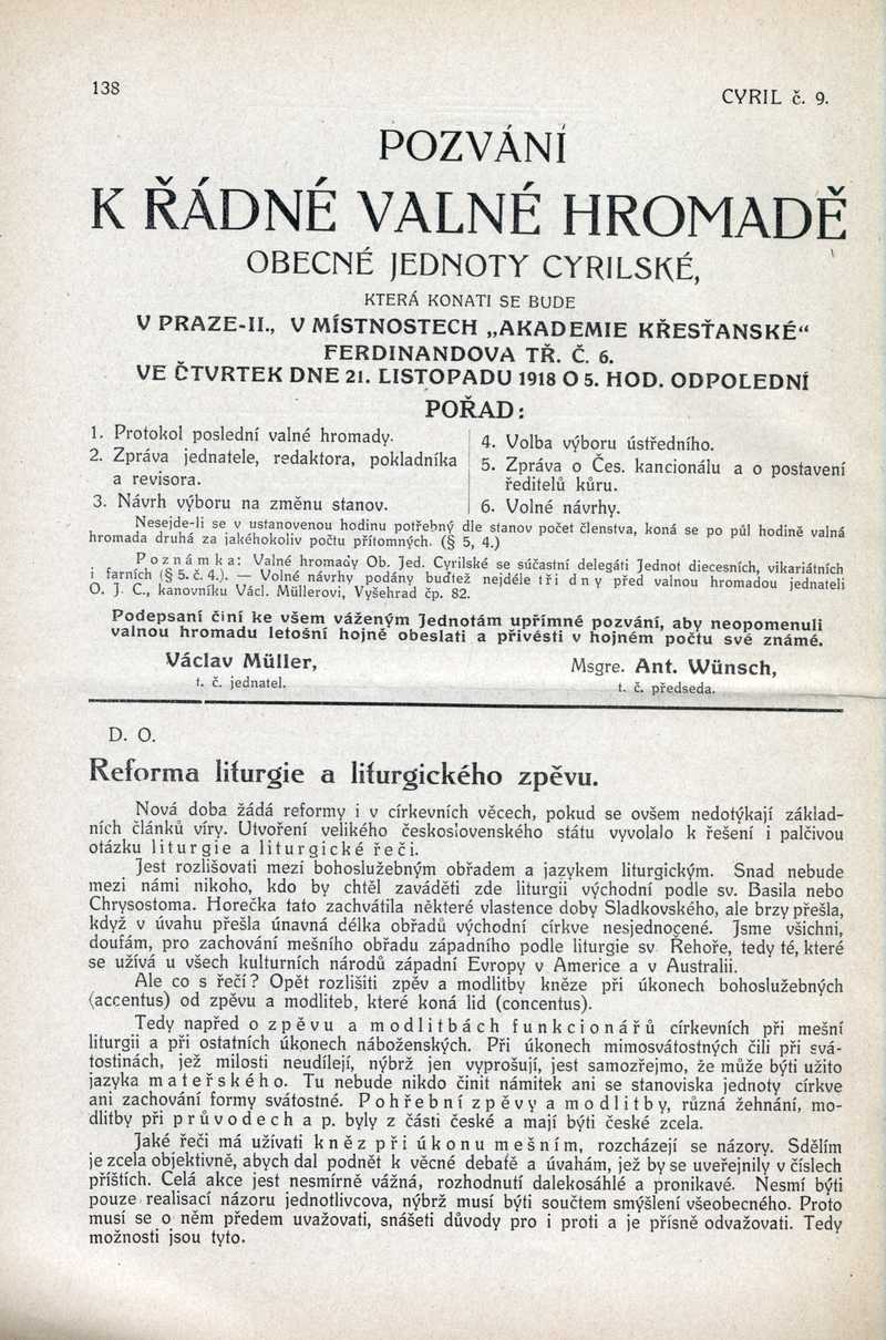 Reforma liturgie a liturgického zpěvu Ročník: 1918; strana: 138, Přepis ke stažení ve formátu MS Word [0 kB]